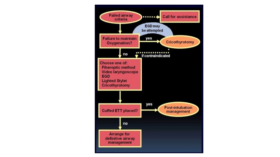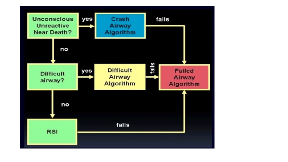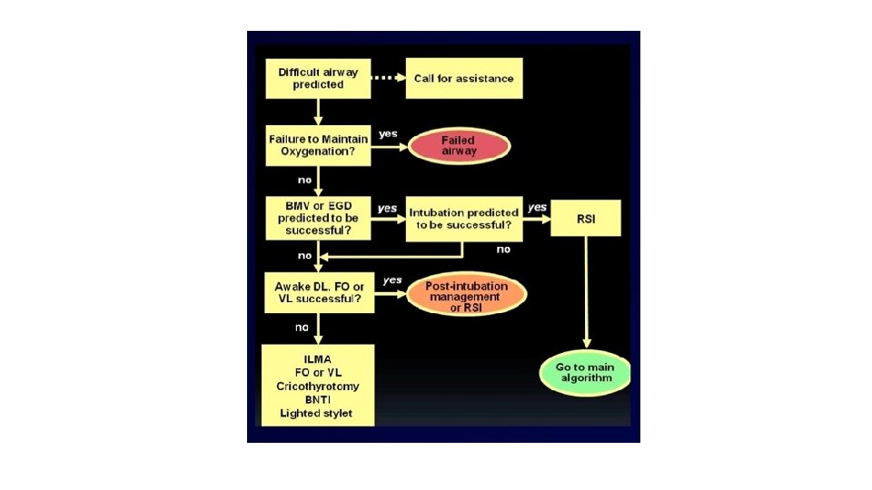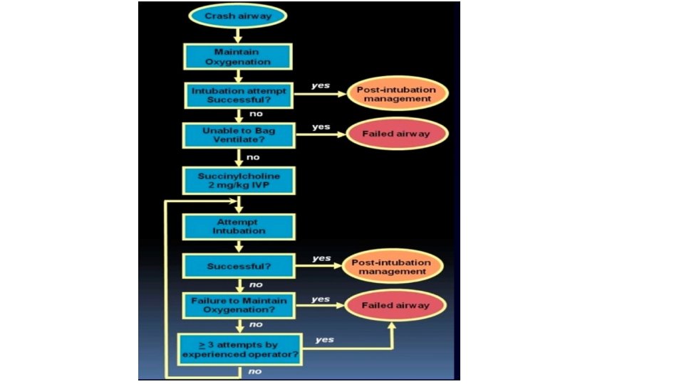 Conclusions • The algorithm are intended as guide line only • Understanding the fundamental concept of the difficult and failed airway • Identification of the difficult, recognition of the crash airway and the use of RSI as airway management method of choice for the most emergency intubations which will result in successful airway management with minimal morbidity.