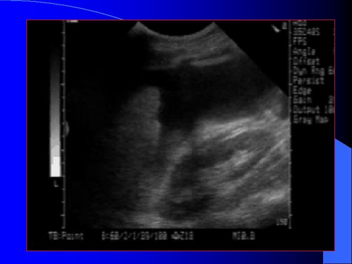 Volume Assessment by US l Caveat to Branney study: – Artificial condition: infused fluid – Fluid in Morison’s after pelvis overflow l Tiling et al : – 200 -250 ml detected by US – Collection >0. 5 cm suggests over 500 ml l Transvaginal/rectal – 15 ml of free intraperitoneal fluid