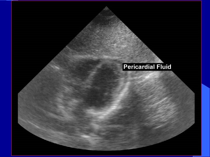 Clinical Case l Initial BP 116/72, pulse 109 RR 24. IV’s placed. l No JVD, Clear breath sounds, non tender abdomen l As CXR is about to be done, pulse increases to 134. l Bedside ultrasound is done while cartridge is developed.