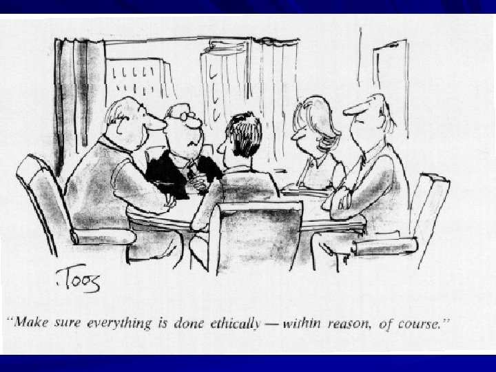 Organizational Ethics Organizational… ethics is the intentional use of values to guide the decisions of a system. (Ralph Porter) Alignment of org culture (mission and vision) with corporate decisions Knowing and doing what is right in the workplace in response to various situations Management led but “everyone’s business” Leaders need to treat ethics “the same way they treat other organizational priorities” (Hamel) Who we say we are and how we show it Setting an ethical culture