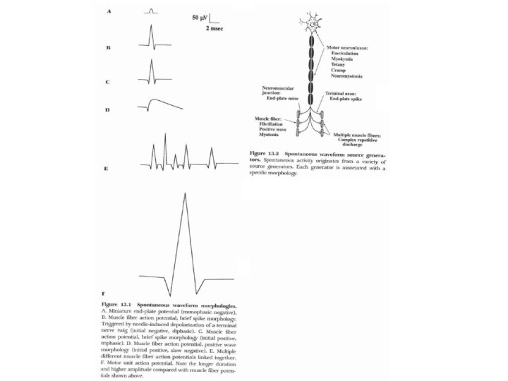 Pre-Synaptic Disorders • The baseline EPP is reduced and some are subthreshold • The baseline CMAP is reduced • Slow RNS- the EPP falls further, fewer muscle fibers generate action potentials and the CMAP is reduced more • Fast RNS- pre-synaptic calcium [ ] increases, more Ach is released, larger EPPs generate muscle fiber action potentials and the CMAP is increased • LEMS- Increment often > 200% • Botulism- Increment 30 -100%