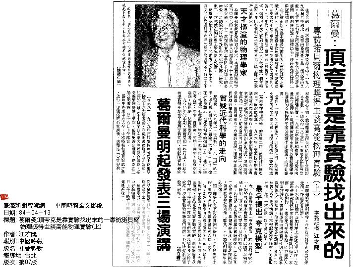 創黑洞一詞 物理學家惠勒病逝 (John A. Wheeler(July 9, 1911 – April 13, 2008) ) http: //www. princeton. edu/pr/pwb/08/0421/wheeler/