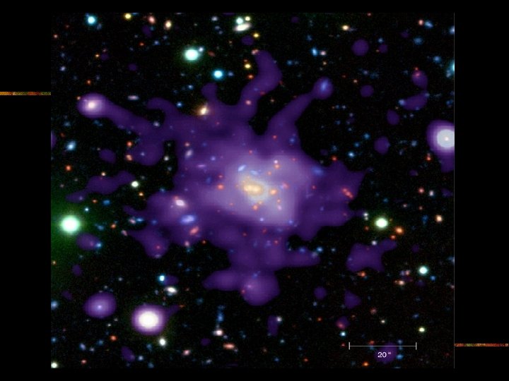Cluster di galassie Centaurus: dall'emissione X si nota la presenza di una struttura filamentare la cui origine può essere legata alla perdita di gas da parte di una galassia da poco entrata nell'ammasso o dovuta ad attività esplosiva che avrebbe allontanato il gas dall'oggetto centrale.