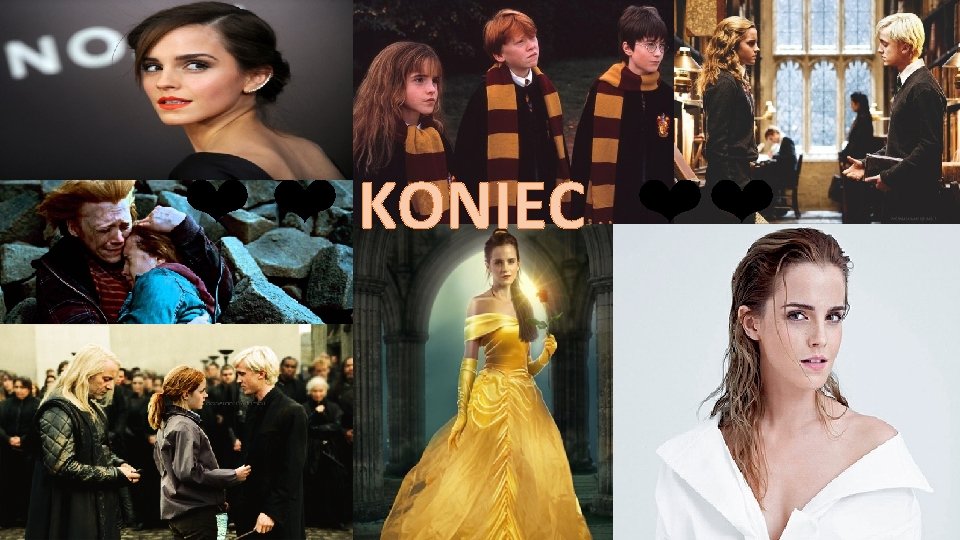13 CIEKAWOSTEK • 1. Emma jest świetną uczennicą – od zawsze zdobywała prawie same „A” (inaczej sześć) za wszelakie formy aktywności w szkole. Emma miała aż 10 przedmiotów. Osiem napisała na szóstkę, dwa na piątkę. • 2. Swoje dwunaste urodziny obchodziła na planie „HP i Komnata Tajemnic” • 3. Duerre to nie jedno z imion Emmy, tylko nazwisko panieńskie jej matki. • 4. Daniel i Rupert nazywali ją także „jednorazowa Watson”, ponieważ Emma zawsze chciała nagrać scenę perfekcyjnie za pierwszym razem i bardzo nie lubiła powtórek. Przez to o mało nie pokłóciła się z reżyserem. • 5. Jej ulubioną książką z sagi HP jest „Więzień Azkabanu” • 6. Aby dostać rolę Hermiony musiała zaśpiewać. • 7. Jej ulubione sceny z HP to ; scena z Trollem, Lochart’em oraz z Malfoy’em, kiedy Hermiona w trzeciej części uderza go w twarz. Co do części filmu kiedy Hermiona uderza Draco w twarz – Emma nie wiedziała, czy ma to zrobić „na niby”. Na początku uderzyła Toma naprawdę. • 8. Rupert Grint nie mógł doczekać się sceny pocałunku z Emmą… W przeciwieństwie do niej! • 9. Nie cierpi, kiedy ktoś pyta się jej czy umawiała się z Danielem lub Rupertem. • 10. Na premierze ostatniej części HP popłakała się. • 11. Twierdzi, że jest największą fanką Harry’ego Pottera • 12. Kochała się kiedyś w Tomie Feltonie. • 13. Wysłano jej ponad 20 Biblii, bo ludzie uważali że przez grę w HP potrzebuje „przewodnictwa”.