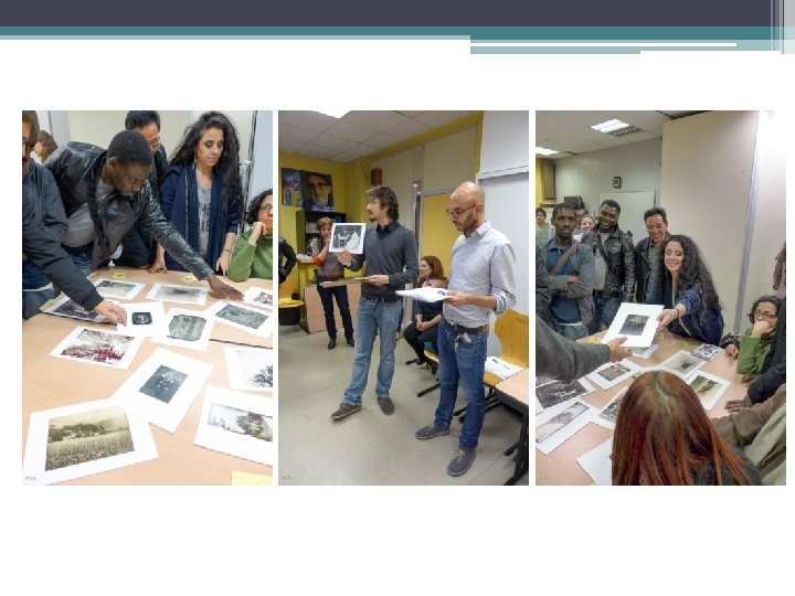 Les séances à l’AFB • 8 séances d’octobre à décembre 2014 • 5 groupes de différents niveaux ( = une quarantaine de personnes) § Séance 1 : Découverte du Projet § Séance 2 : Découverte d’une présélection de photographies