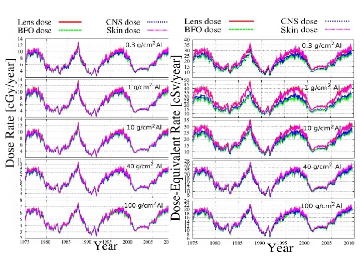 Motivator. . GCR Dose Rate Modulation Near Earth Measurements Outside Geomagnetosphere Over Four Solar Cycles Chandrayyan LRO Thin detector dose ~ 35 km x 200 km Thick detector dose ~35 km x 200 km Thin detector dose ~50 km circular Thick detector dose ~50 km circular 100 90 80 70 4250 60 4000 50 3500 40 Apollo 15 Apollo 8 Apollo 11 3750 30 20 3250 10 2009 2007 2005 2003 2001 1999 1998 1996 1994 1992 1990 1988 1986 1984 1982 1980 1978 1976 1974 1972 1970 1968 1966 1964 1962 1960 0 1958 3000 Mission-Averages Dose Rate (mrad[Si]/d) 4500 mean CRa. TER dosimeter IP dose average Chandrayyan/RADOM 100 km circular orbit dose Apollo 16 Apollo 17 average crew skin dose average VABD depth dose average Biostack tissue dose Apollo 13 4750 1957 Thule Neutron Monitor Monthly-Averaged Count Rate (c/100/h) 5000
