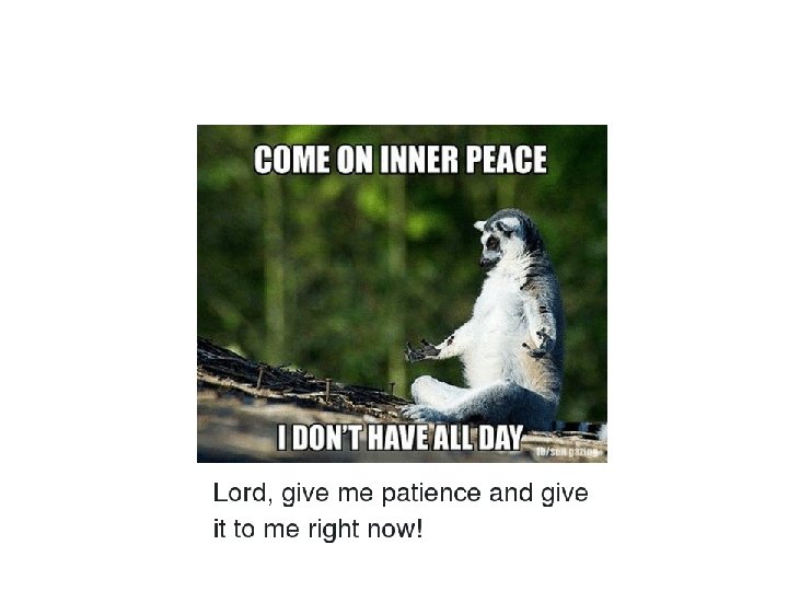 • Patience – ability to endure pain • It is an event – Yes , it is painful right now, let us wait and watch. • Barometer for spiritual progress – Are you more patient ? Or you more accepting ? • How can we be patient and strive at the same time?