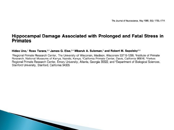 Does stress have adverse effects on the CNS? � Sapolsky ◦ vervet monkeys - 1989
