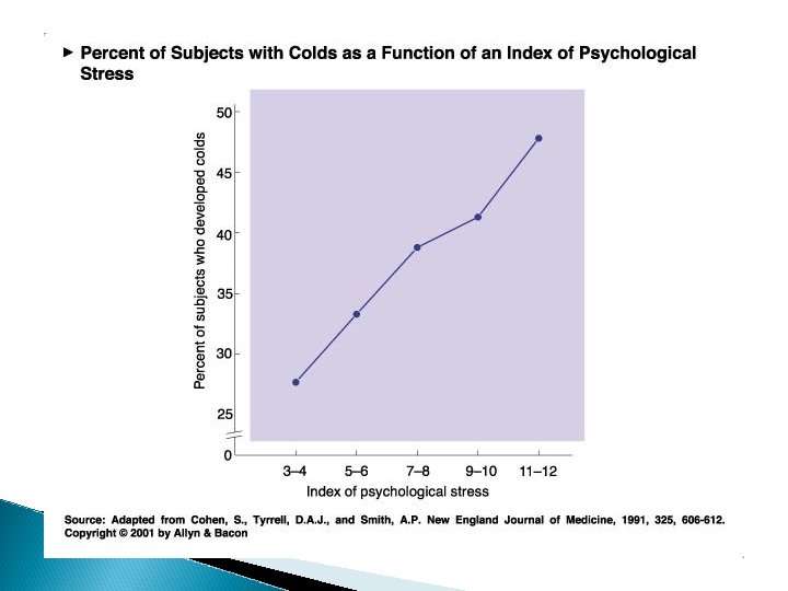 What about more chronic stressors? � Chronic stress situations ◦ examples: Is this associated with increased susceptibility to disease?