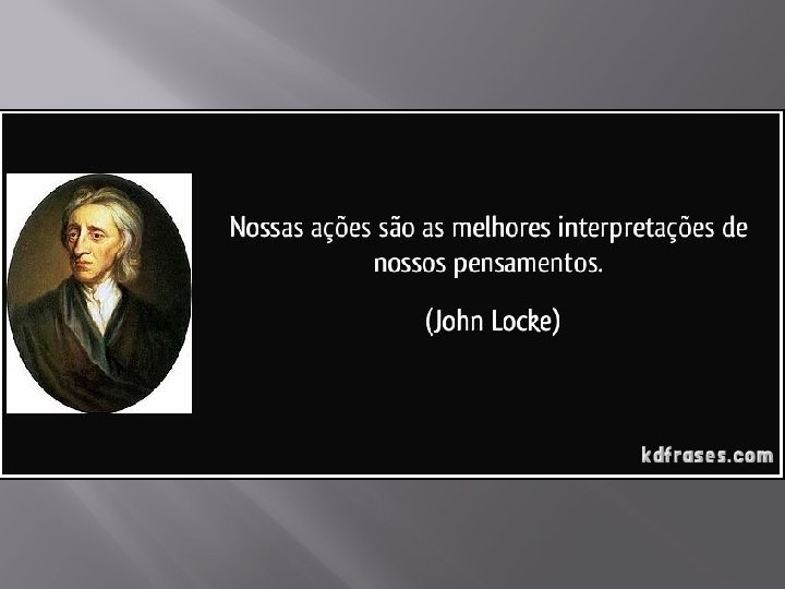 Gnosiologia lockiana Para Locke, o fim da filosofia é prático. Pensa que o fim (finalidade) da filosofia é essencialmente moral; quer dizer: a filosofia deve proporcionar uma norma racional para a vida do homem.