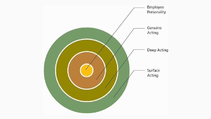 Deep Acting vs. Surface Acting Deep Acting - altering actual feelings to align with display rules Surface Acting - faking emotions to align with display rules without altering underlying feelings