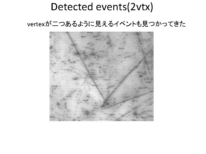 取得された画像数と vertexがあると認識された画像数の比較 乾板の上部 0. 25 mm× 0. 8 mmをScan Gifu University Toho University (2012. 3~2012. 9) 3581766 0. 3% 344786 0. 6% 1769 21231 The number of acquired images/The number of extracted images[%] Toho 0. 3 Gifu 0. 6