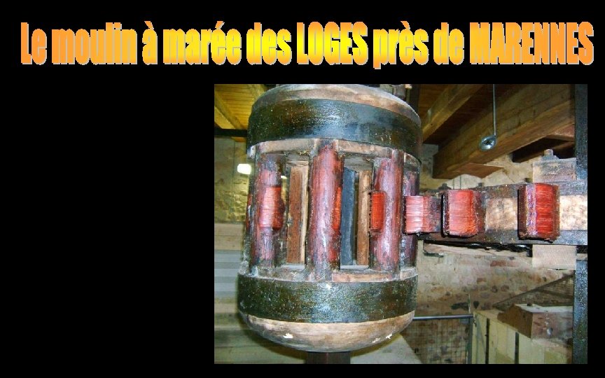 Le Moulin des Loges offre un très rare exemple de reproduction fidèle de mécanisme hydraulique du XVIII è tout en bois: chêne pour les grosses pièces et cormier ou acacia pour les dents des roues (rouet de fosse, rouet de volée. . . ), le tout témoignant du savoir faire d'artisans respectueux d'un patrimoine remarquable. Un meunier effectue des démonstrations de meunerie à marée descendante _voir sur le site officiel pour les horaires_ Le fonctionnement d'un moulin à marée est un événement rare à ne pas manquer lors de votre passage près de Marennes ou Oléron.