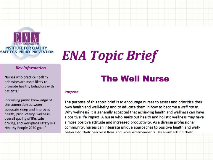 Resources Available • • • Position statements Toolkits Topic briefs White Papers Translation into Practice • Clinical Practice Guidelines • ENA communities • Journal of Emergency Nursing • Free education