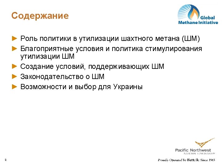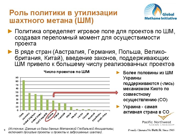 CMM in Ukraine High energy prices in Ukraine make CMM projects attractive Ukraine’s legislation in general supports CMM projects, but there is room for improvement Coal production licenses automatically authorize coal producers to extract and emit or utilize CMM, but no easy transfer of ownership Attempt at Green Tariff Law, but not specific for CMM Until recently, Ukraine had no production taxes on CMM gas About 15 JI projects in Ukraine, most using CHP or new boilers Without JI, domestic policy will be definitive for CMM projects 13