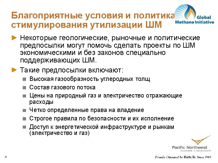 CMM-specific policies (1) Strong institutional support, i. e. designated CMM authorities and regulatory agencies, can help identify policy options, technical barriers and reduce transaction costs for CMM In Australia, national government established programs, such as Greenhouse Gas Abatement Program (GGAP) and Coal Mining Abatement Technology Support Package (CMATSP). The programs provide grants and supports research on deploying newer technologies to reduce GHG emissions 9