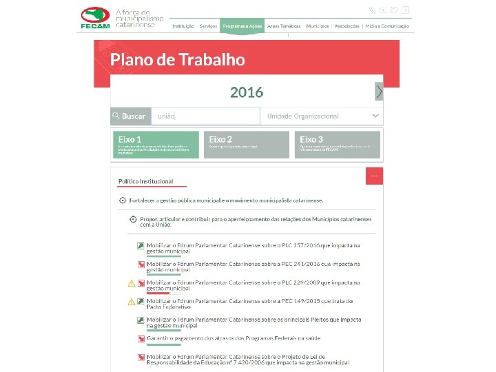 Área técnica criada para atuar diretamente com as Associações de Municípios de Santa Catarina no apoio ao planejamento, controle e execução dos processos de captação de recursos e gestão de convênios municipais.