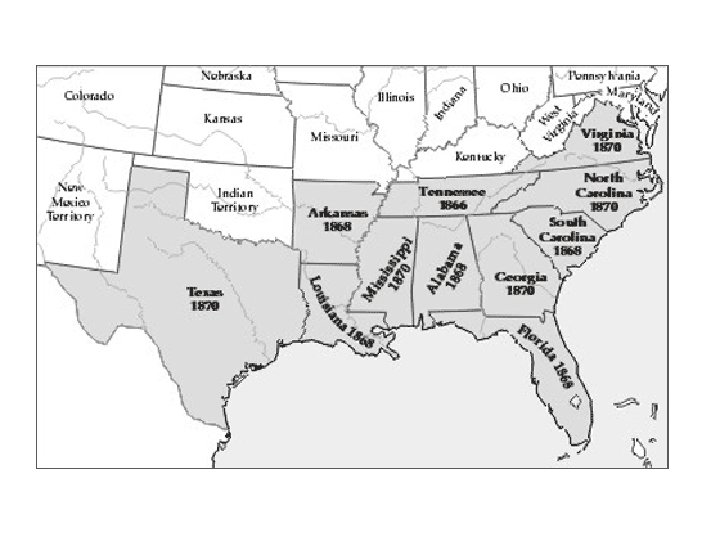 5. Reconstruction efforts fade by the 1870 s – all Southern states are allowed back into the union even though oppression and inequality for blacks in South was stronger than ever
