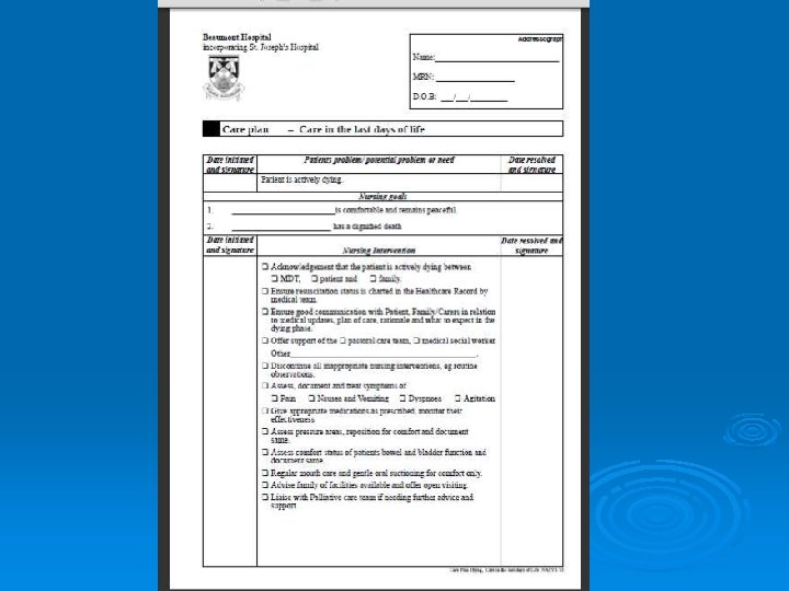 Guideline Ø A statement of principles giving guidance but allowing for professional initiative. Ø The Guideline provides a template of care to all staff in End of Life care of patients within the TUN Directorate.