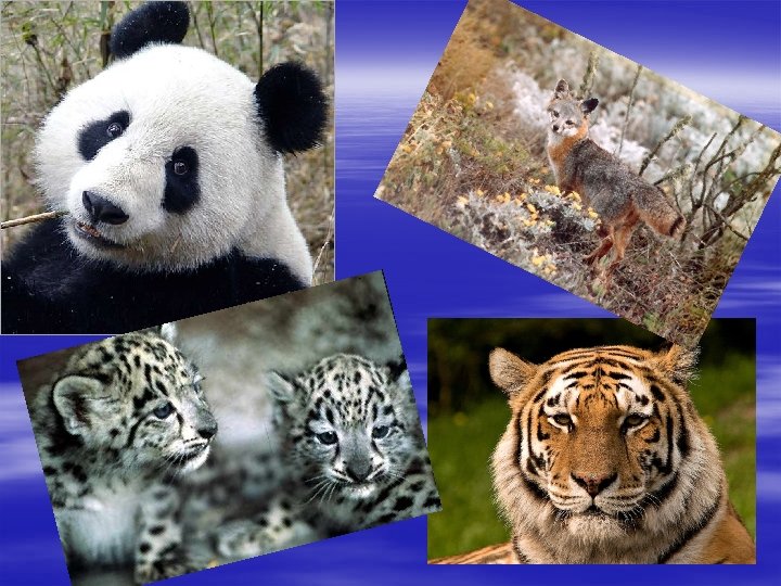 Some groups of endangered species: § Extinct: the last remaining member of the species has died, or is presumed beyond reasonable doubt to have died. Examples: Thylacine, Dodo, Passenger Pigeon, Tyrannosaurus, Caribbean Monk Seal, Dimetrodon. § Critically endangered: faces an extremely high risk of extinction in the immediate future. Examples: Arakan Forest Turtle, Javan Rhino, Brazilian Merganser, Gharial. § Endangered: faces a very high risk of extinction in the near future. Examples: Blue Whale, Bonobo, Giant Panda, Snow Leopard, African Wild Dog, Tiger, three species of Albatrosses, Crowned Solitary Eagle, Markhor, Dhole, Rangas. § Vulnerable: faces a high risk of extinction in the medium-term. Examples: Cheetah, Gaur, Lion, Sloth Bear, Wolverine, Manatee, Polar Bear, African Golden Cat. § Near Threatened: may be considered threatened in the near future. Examples: Blue-billed Duck, Solitary Eagle, Small-clawed Otter , Maned Wolf, Tiger Shark.