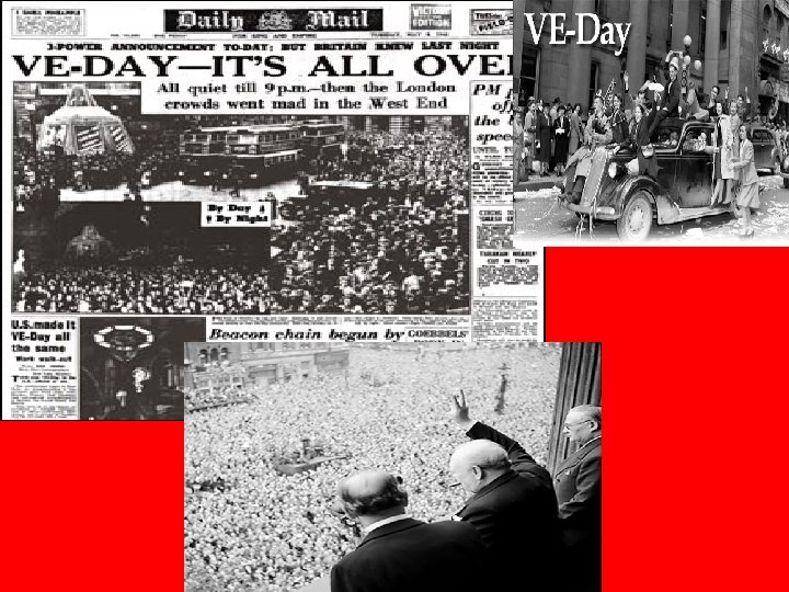 Deflating the War • April 1945: FDR president of USA dies. Truman replaces him • After a series of unsuccessful minor attacks; Germany has to surrender • • VE-Day (Victory in Europe) May 8 th, 1945 WWII comes to an end in Europe Hitler kills himself by method of suicide Japan is still ravaging on (Only Axis power left)
