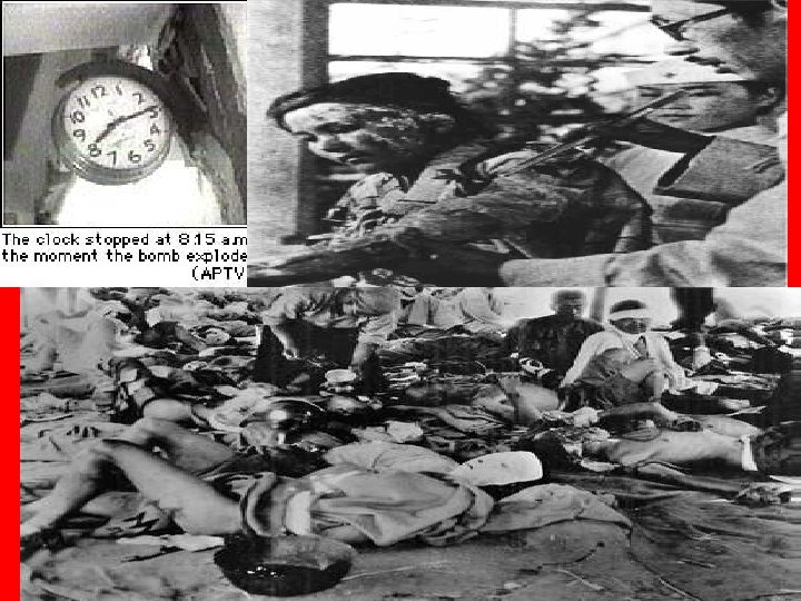 1 st bomb: “Little Boy” –August 6, 1945: Hiroshima bombed (population 365, 000; 73, 000 die) –Dropped at 8: 15 am –Total devastation –http: //www. youtube. com/wat ch? v=NF 4 LQa. WJRDg