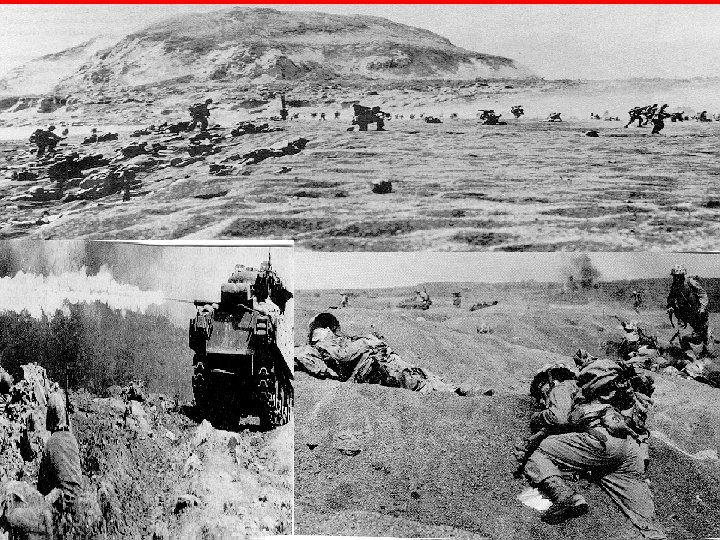 Japan’s problems Iwo Jima: (Feb-Mar 1945) • General Kuribayashi, the Japanese Commander of Iwo Jima, was brilliant. • The Japanese strategy was unique for three reasons: 1. The Japanese didn't fight above ground. They fought the battle entirely from beneath the ground. They dug 1, 500 rooms into the rock. These were connected with 16 miles of tunnels. 2. Japanese strategy called for "no Japanese survivors. " They planned not to survive. 3. Japanese strategy was for each soldier to kill 10 Americans before they themselves are killed.