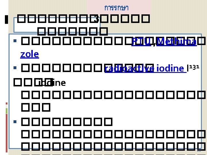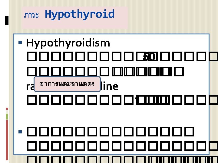 โรคความผดปกตของตอมธย รอยด)Thyroid dysfunction) ������ hyperthyroidism hypothyroidism ������� (Nodular thyroid diseases) ������ solitary thyroid nodules ��� 57
