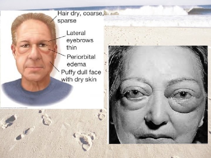 • Hypothyroidism o Myxdema: chronic hypothyroid in adults causes glycoproteins to be deposited in the dermis • Facial puffiness is characteristic sign • May lead to myxdema coma- can be fatal