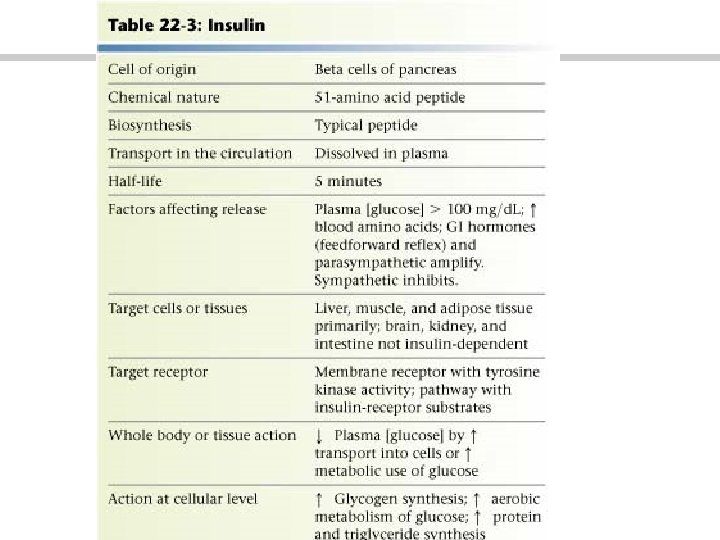 Insulin Synthesis • Insulin synthesis is stimulated by glucose or feeding and decreased by fasting • Threshold of glucose-stimulated insulin secretion is 100 mg/dl. • Glucose rapidly increase the translation of the insulin m. RNA and slowly increases transcription of the insulin gene