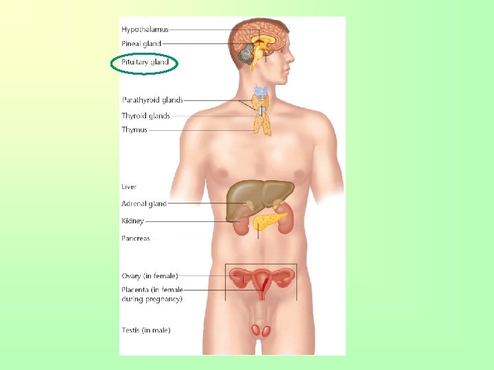 Pituitary-hypothalamus interaction • Hormones of the anterior pituitary are controlled by releasing chemical (factors) produced by the hypothalamus • As hormones are needed, the hypothalamus releases a specific releasing factor for each hormone