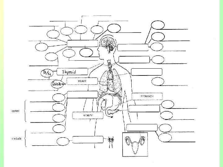 • Hyperparathyroidism – Over-activity of parathyroid resulting in increased calcium in the blood – Leads of kidney stones, GI disturbances – Bones become weak, deformed and fracture easily because calcium is drawn from the bone • Hypoparathyroidism – Under-activity of parathyroid gland causing a low level of calcium in blood – Tetany, hyperirritability of nervous system, twitching – Death can occur if the larynx and respiratory muscles are involved.