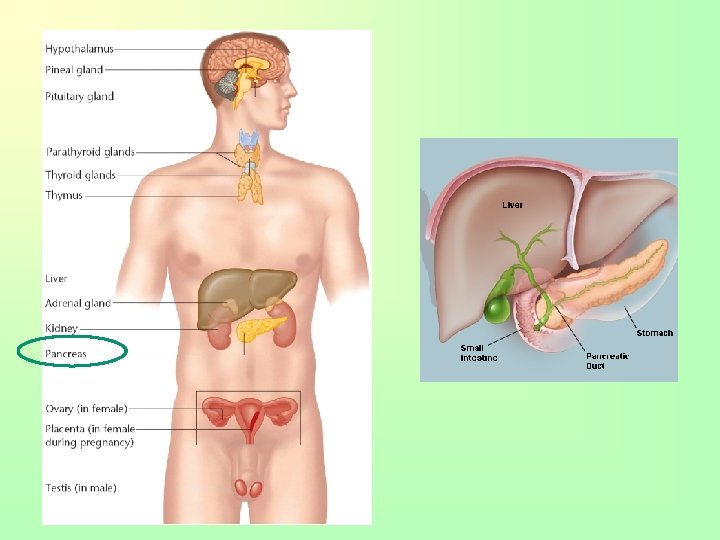 Pancreas • Fish-shaped organ behind stomach • Exocrine (secretes pancreatic juices that are carried to small intestines to aid in digestion) and endocrine gland (produces insulin needed for cells to absorb sugar from the blood)