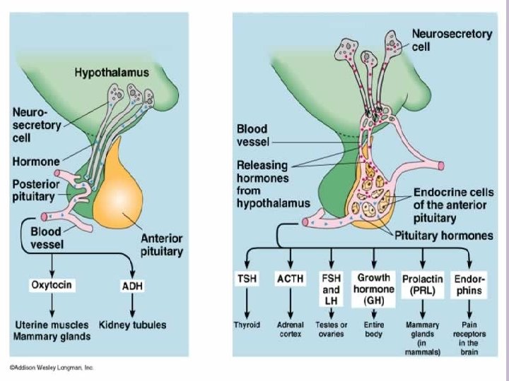 NEGATIVE & POSITIVE FEEDBACK LOOPS Positive Feedback Loop As long as stimulus is present, action of hormone continues Infant nursing at mother’s breast stimulates hypothalamus stimulates posterior pituitary Oxytocin released stimulates milk production & ejection from mammary glands Milk release continues as long as infant continues to nurse