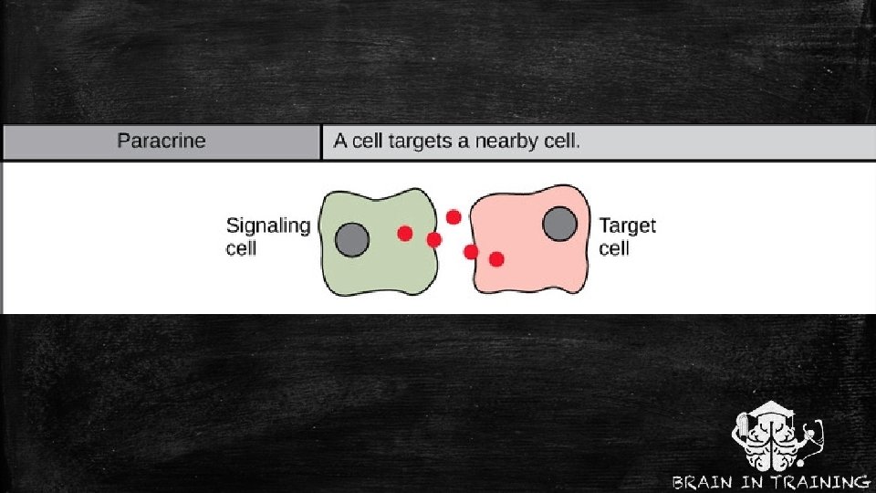 PARACRINE SIGNALING ▪ LOCALLY ACTS BETWEEN CELLS THAT ARE CLOSE TOGETHER ▪ MOVE BY DIFFUSION THROUGH THE EXTRACELLULAR MATRIX ▪ THE SIGNALS ELICIT QUICK RESPONSES AND LAST ONLY A SHORT AMOUNT OF TIME ▪ PARACRINE LIGAND MOLECULES ARE NORMALLY QUICKLY DEGRADED BY ENZYMES OR NEIGHBOURING CELLS – IN ORDER TO KEEP THE RESPONSE LOCALIZED EXAMPLE IS THE TRANSFER OF SIGNALS ACROSS SYNAPSES BETWEEN NERVE CELLS