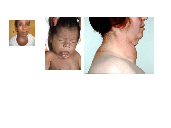 L’ipotiroidismo durante la vita fetale o dopo la nascita provoca l’aborto precoce o una sindrome chiamata cretinismo, con nanismo (ipotiroideo): Gli ormoni tiroidei sono indispensabili per la differenziazione dei tessuti e la formazione degli organi. Classico esempio: i girini tenuti in un ambiente privo di iodio non subiscono la metamorfosi a rane. Nell’adulto, c’è una classica sindrome da ipertiroidismo, nota come morbo di Basedow, su base autoimmunitaria, oppure ci possono essere vari tipi di neoplasie benigne (cisti) o maligne (carcinoma) caratterizzate da ipersecrezione tiroidea e presenza di gozzo più o meno vistoso. L’aspetto caratteristico del volto basedowiano non è dovuto agli ormoni tiroidei, ma ad un effetto diretto del TSH che provoca accumulo di collagene retro orbitale. La sintomatologia generale comprende: ipertermia (aumento della temperatura), dimagrimento, irritabilità e instabilità dell’umore, insonnia, iperfagia, tachicardia con modesta ipertensione, tremore muscolare fine.