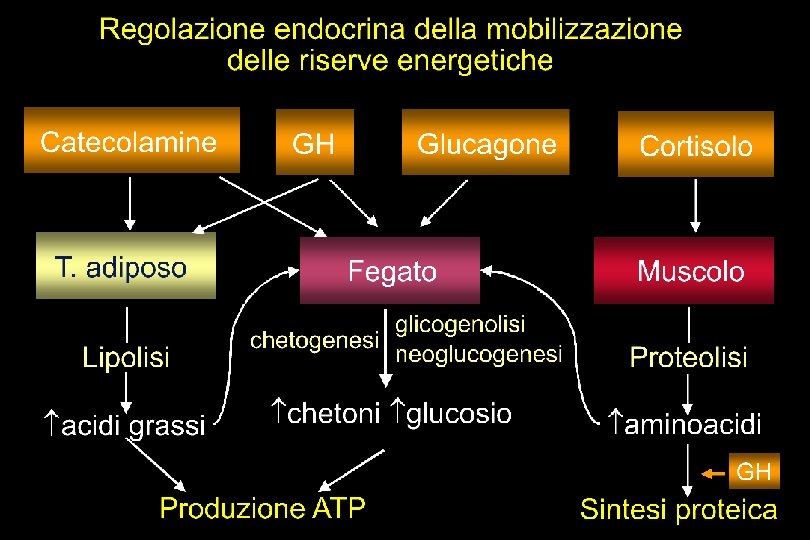 SNC + + AVP/CRF ipotalamo + GHRH/somatostatina Gn. RH TRH PIF + + - ipofisi ACTH surrene LH/FSH HPRL TSH ovaio testicolo steroidi sessuali glucocorticoidi mammella GH tiroide T 3, T 4 t. bersaglio IGF-1