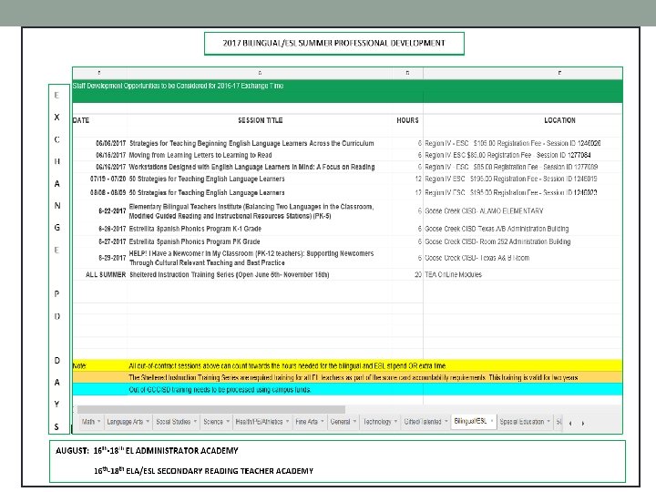 -Window is open from June 15 th until November 15 th. -Teachers will submit completion of training modules and certificates to Nancy Hernandez in the bilingual/ESL department to grant teachers credit through Eduphoria.