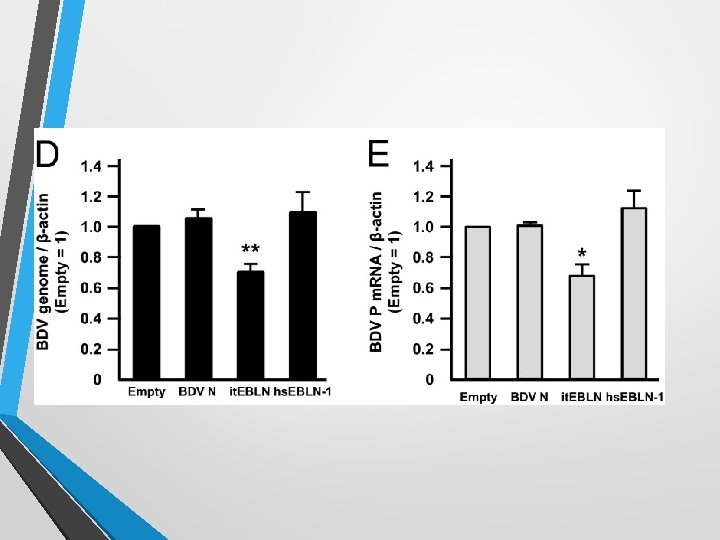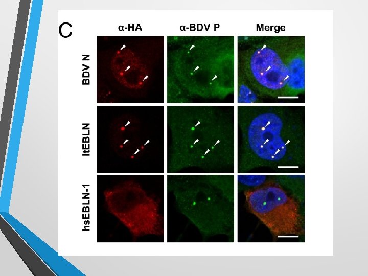 it. EBLNs and hs. EBLNs • • it. EBLN Co-localizes with the viral factory in the nucleus Decreases exogenous BDV infection and replication Incorporated into the viral ribonucleoproteins • • hs. EBLN • Exogenous BDV infection and replication remains the same • Is not incorporated into viral ribonucleoproteins Localizes in the cytoplasm