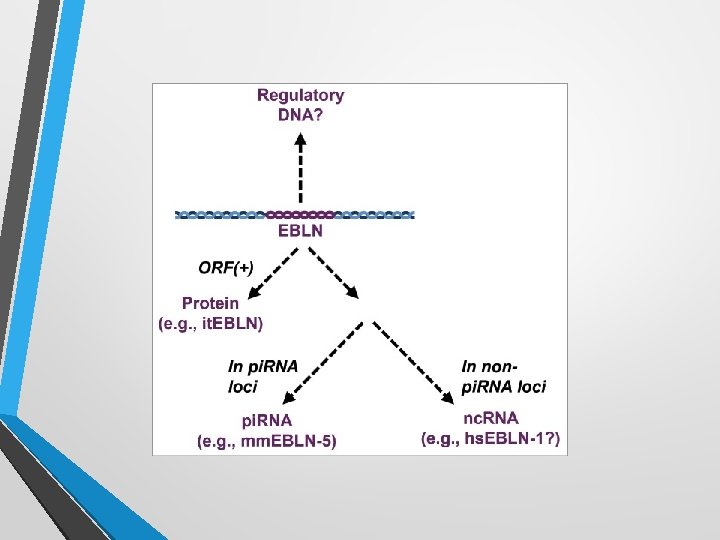 Transcript reversion with anamnestic pi. RNA silencing (TRAPS) • Marmoset EBLN • mm. EBLN/rn. EBL N • 1 within annotated pi. RNA • 2 (3) within • hs. EBLN • 3 within clusters • *hs. EBLN-7 – pi. RNA like RNA (shorter) clusters • *cj. EBLN-7 – pi. RNA like RNA (shorter) annotated pi. RNA clusters