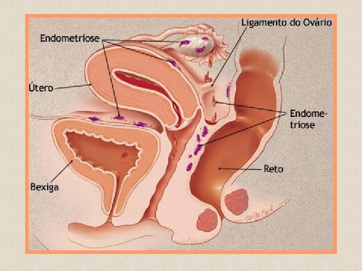 DOR: nem sempre presente… Outros sintomas: • Pequenos sangramentos vaginais pré-menstruais • Menstruações com fluxo de sangue mais intenso ou mais prolongado do que o normal • Infertilidade