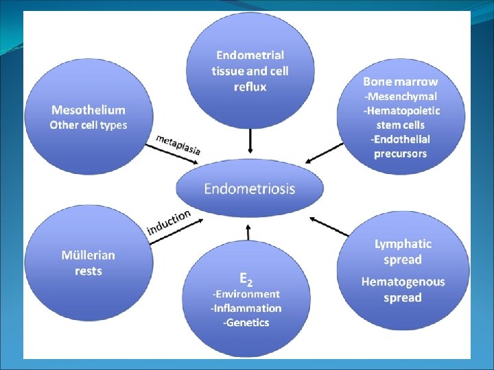 Eve Götürülecek Mesajlar Östrojen bağımlı bir hastalık olan endometriozisin etyopatogeneziyle ilgili bir çok teori öne sürülmüş olmakla birlikte hiç bir teori tek başına yeterli değildir Muhtemelen her biri ayrı oranlarda hastalığın patogenezine katkıda bulunmaktadır. Endometriozisin farklı tiplerinin farklı nedenlerden kaynaklanabileceği de göz önünde bulundurulmalıdır