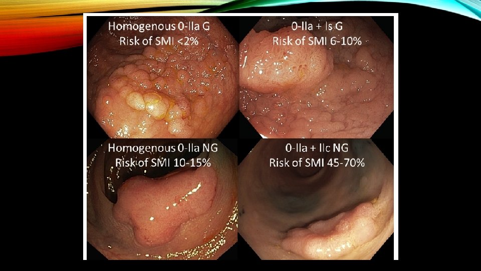 • Only in instances of a patient who is a very poor surgical candidate should a sessile or flat lesion with endoscopic features of deep submucosal invasion undergo endoscopic resection.