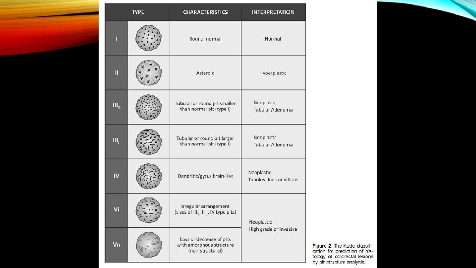 Kudo classification; The pit pattern classification of colorectal tumors (type I-V pit pattern) in chromoendoscopy