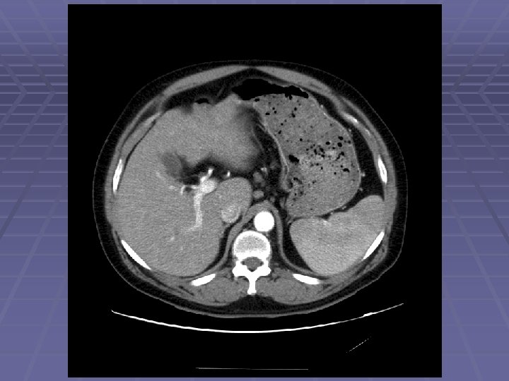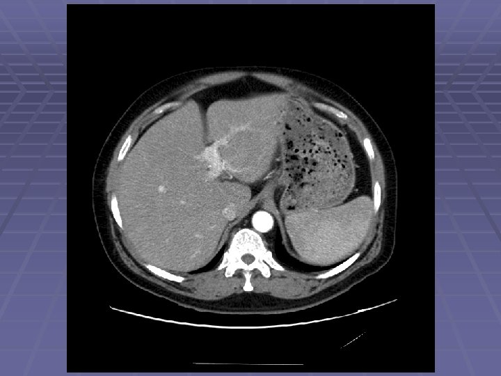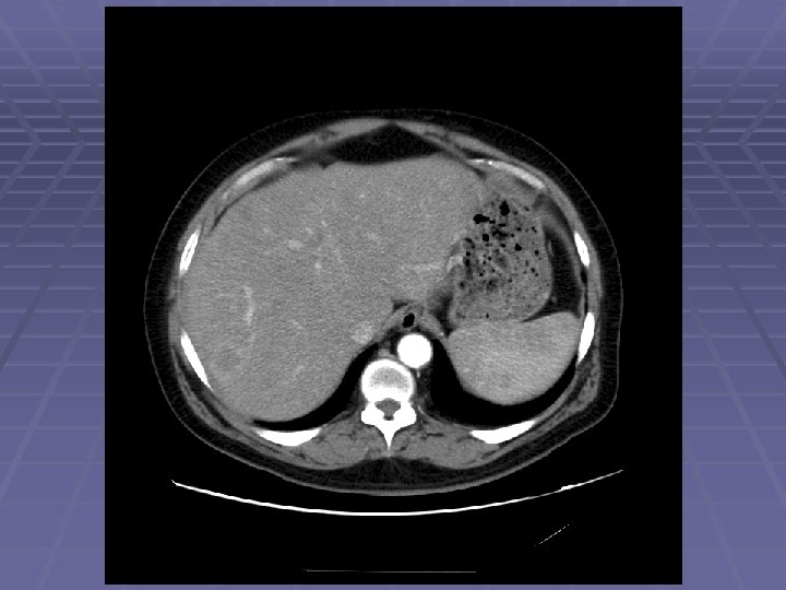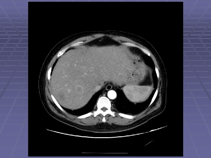 Endosonographic Evaluation EGD showed normal gastric mucosa with evidence of mild external compression vs. submucosal lesion in the area of the gastric incisura EUS Clear demarcation of hypoechoic mass adjacent to left lobe of the liver FNA was performed