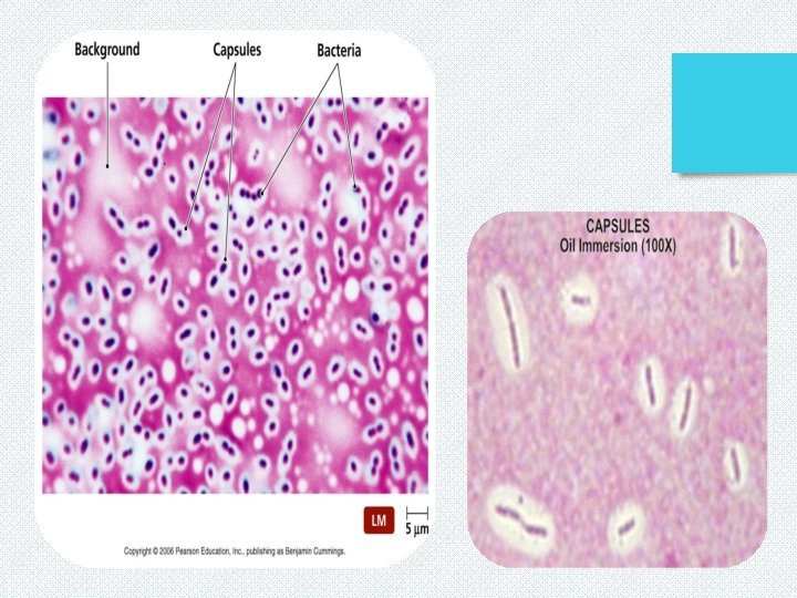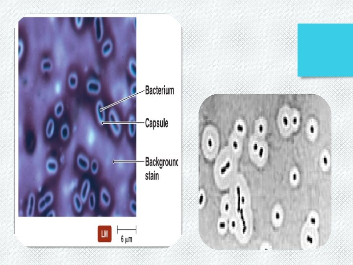 v. Interpretation Capsules appear as clear zones (halos/transparent) around the refractile organism. Examples: Bacteria with capsules: Streptococcus pneumoniae, Klebsiella pneumoniae, Pseudomonas.