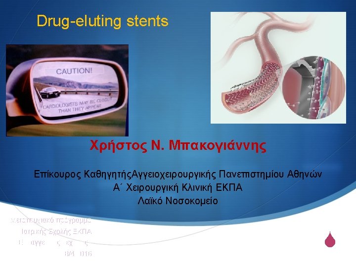 Ανεπιθύμητες ενέργειες § Vascular toxicity rather than cytotoxicity – – Late incomplete apposition Medial thinning Aneurysm/rupture Delayed re-endothelialization Vasculo-toxic effects in pig coronaries: 90 days High dose, fast release Low dose, slow release Rogers C et al. Circ. 2000.