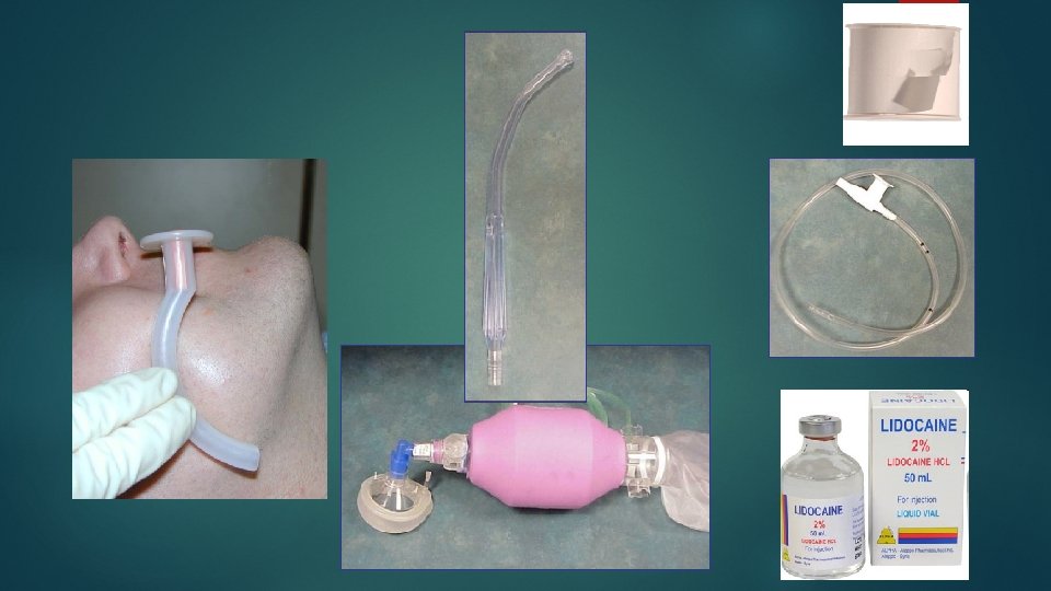 Lubricant, Malleable stylet 10 -ml syringe (to inflate ET cuff) Oxygen and manual bag valve mask Suction apparatus Stethoscope Sterile gloves and goggles Oropharyngeal airway CO 2 Detector