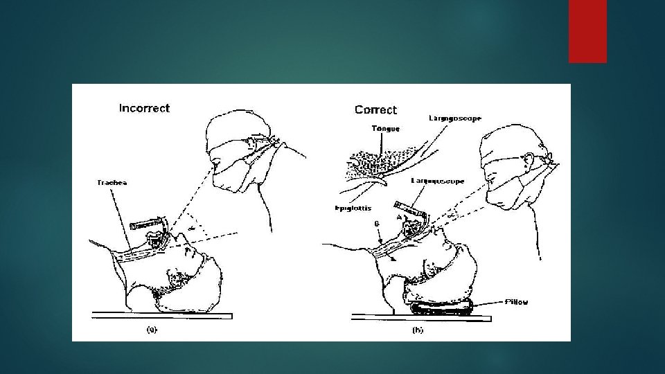 Complications: Ø Ø Ø Hypoxia (Long duration of procedure, Intubation of a bronchus ( right more common, Failure to recognize misplacement of tube, Aspiration) Pneumothorax (resulting from over ventilating with a BVM without a pressure release valve) Trauma (to the teeth, vocal cords, soft tissues of the larynx and related structures) Hypertension and tachycardia (can occur from the intense stimulation of intubation. This is potentially life-threatening in the cardiac patien) Gastric distention and regurgitasi (Failure to secure the placement into esophagus). Cardiac arrhythmias (related to vagal stimulation or sympathetic nerve stimulation may occur)