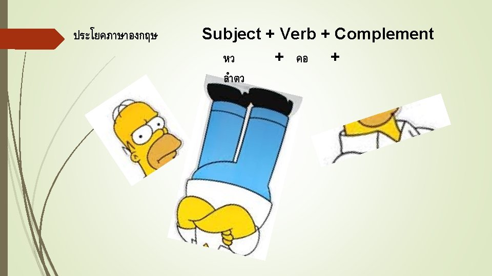 ประโยคภาษาองกฤษ Subject + Verb + Complement หว + คอ + ลำตว ใคร + ทำอะไร + รายละเอยด Suicide does not end the chances of life getting worse. Suicide eliminates the possibility of it ever getting better.